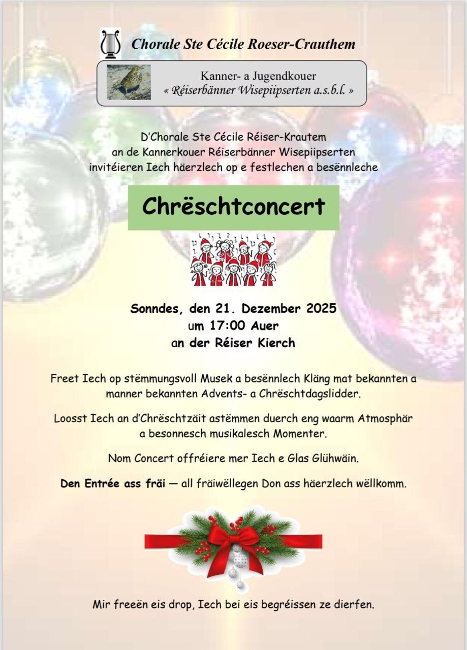 Dimanche, 21 Décembre 2025Krëschtlidder aus aller Welt